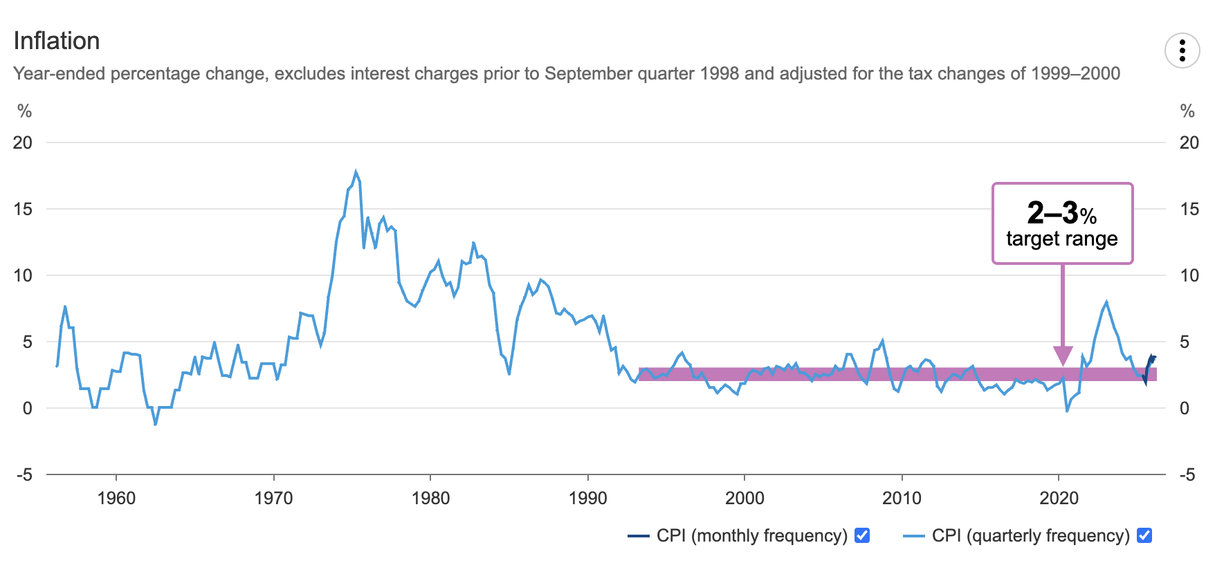 - Household inflation (CPI): Housing remained the single largest pressure point at +6.8% annually, driven by electricity costs surging 32.2% as government energy rebates were exhausted, alongside new dwellings (+3.5%) and rents (+3.9%). Health (+3.2%) and education (+5.4%) also added to household cost pressures.