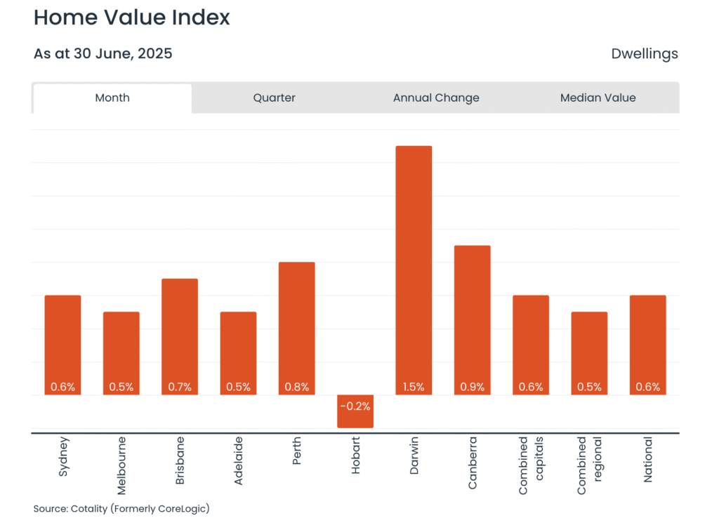 Although regional Australia continues to post stronger quarterly growth overall (1.6% vs 1.4% for the capitals), the monthly data suggests capital city markets are regaining leadership, a trend expected to continue into the second half of the year.